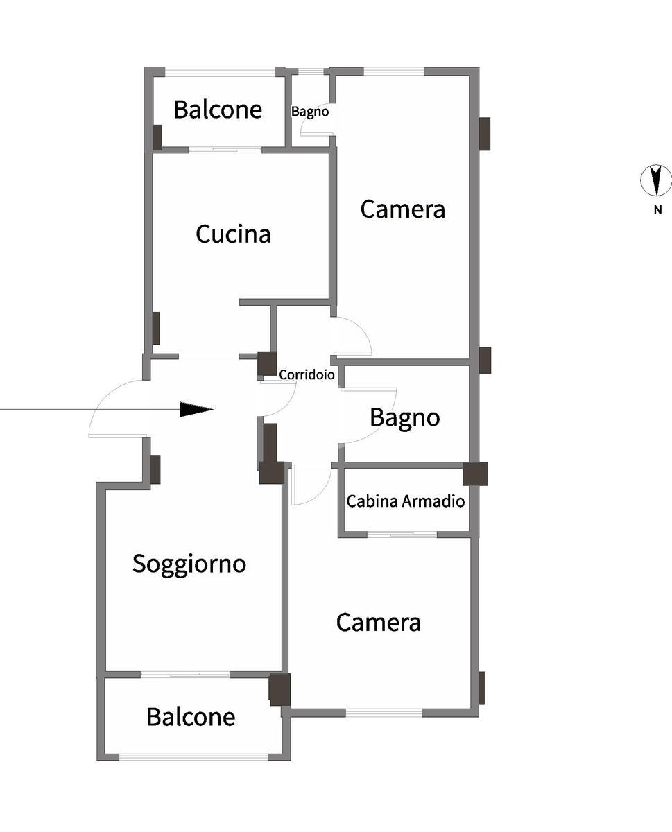 L'immobile è composto da tre locali così composto: Ingresso, salone, ampia cucina abitabile, due ampie camere di cui una con cabina armadio annessa, doppi servizi e due balconi.
