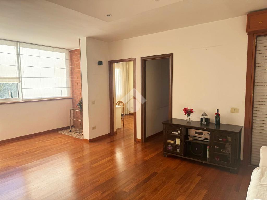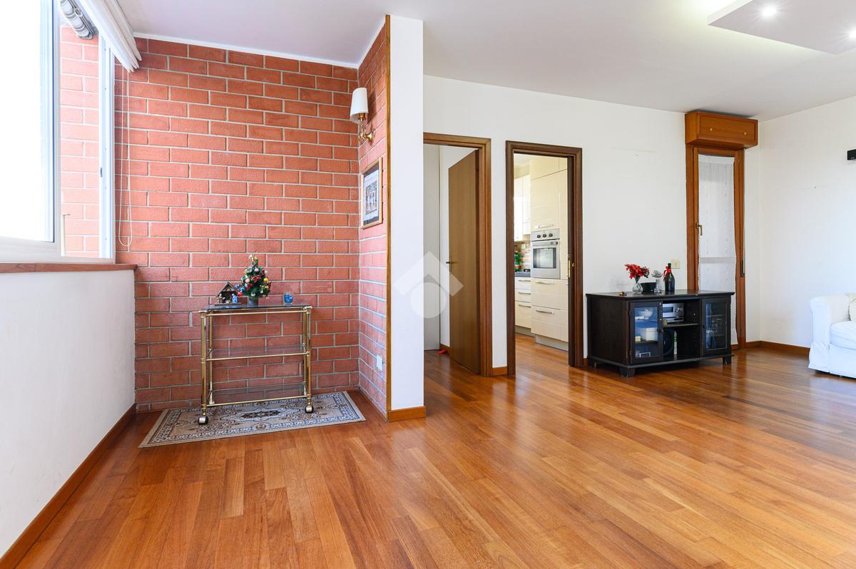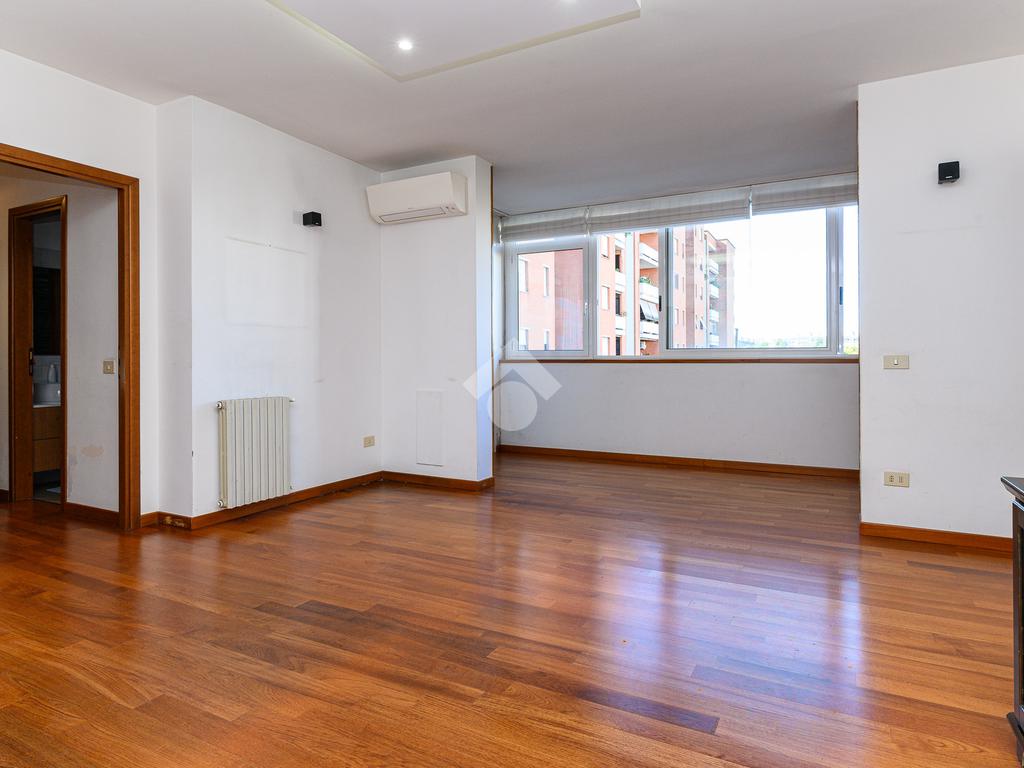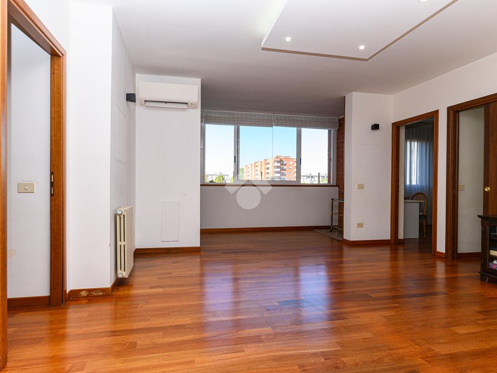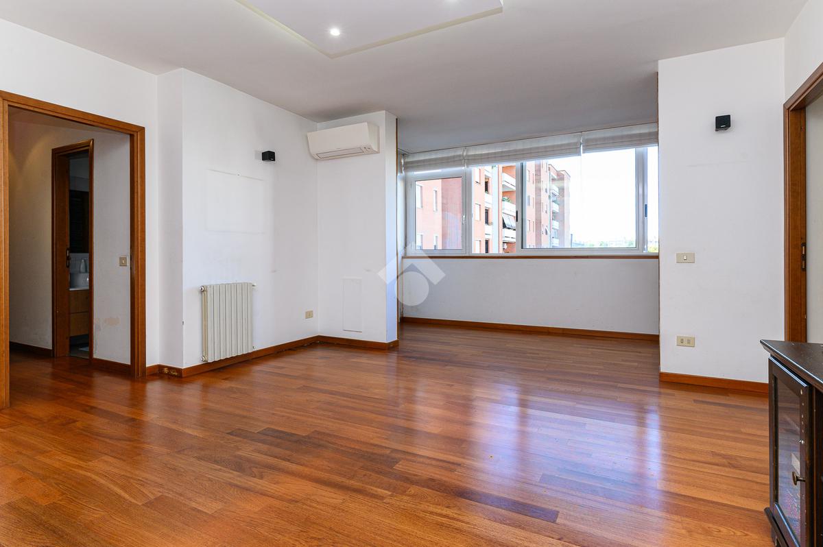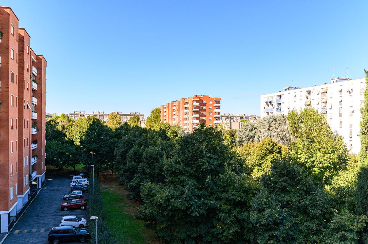 Lo Studio Colli Aniene . propone in vendita un quadrilocale ristrutturato al quarto piano di un edificio in cortina, l'appartamento è così composto: Soggiorno, cucina, tre camere, doppi servizi e 2 balconi e ripostiglio. Completa la proprietà un box auto di 20 mq.
